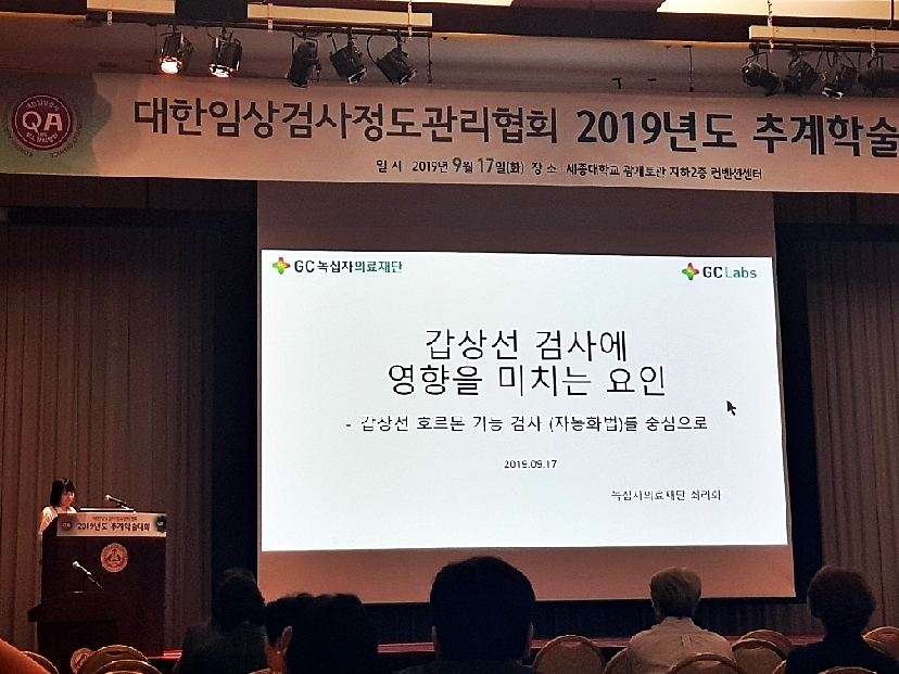 GC녹십자의료재단(원장 이은희)은 자사의 최리화 전문의가 지난 17일 세종대학교 광개토관 컨벤션센터에서 열린 ‘대한임상검사정도관리협회 2019년 추계학술대회’에 참석하여 ‘갑상선검사에 영향을 미치는 요인’이라는 주제로 발표했다고 밝혔다.