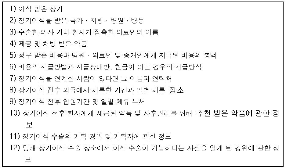 한편, 오는 10월 8일부터 시행되는 장기등 이식에 관한 법률(2020. 4. 7. 법률 제17214호로 개정된 것) 제27조의2에 의하면, 해외에서 장기를 이식받은 환자는 귀국 후 30일 이내에 이식받은 의료기관 등 보건복지부령으로 정하는 사항을 서면에 기재해 질병관리본부에 제출해야 한다.