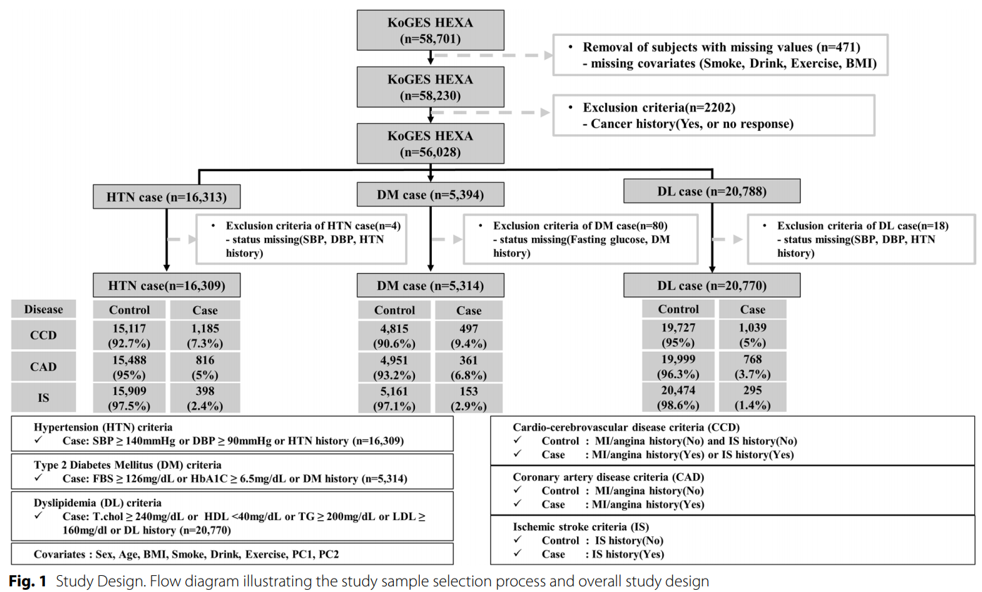 연구팀이 분석한 대상자는 고혈압 1만 6309명, 당뇨병 5314명, 이상지질혈증 2만 770명 등 4만 2393명이다.