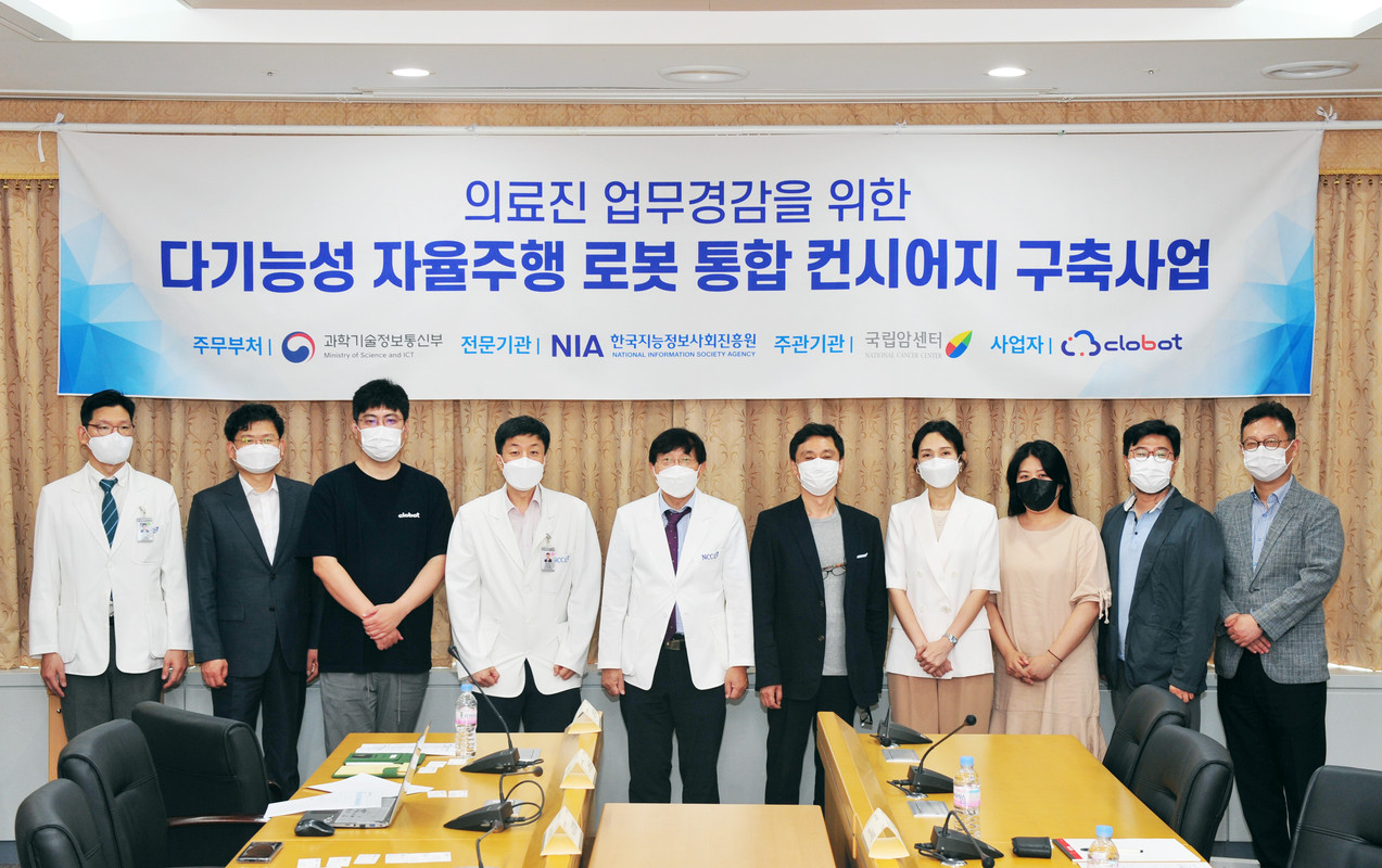 사업자로 ㈜클로봇이 참여하며, 사업비 약 16억 원 규모의 이번 사업을 통해 국립암센터에 의료지원 로봇 10대, 고중량 이송 로봇 2대, 소독용 방역 로봇 1대 등 총 13대의 다기능성 자율주행 로봇이 도입된다.