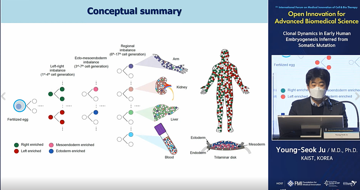 미래의학연구재단이 서울 동대문 노보텔 엠버서더 호텔에서 26일 개최한 제 5회 미래의학국제포럼에서 의과학대학원 주영석 교수는 ‘체세포 돌연변이로 추적한 초기 인간 배아에서의 클론 역학(Clonal Dynamics in Early Human Embryogenesis Inferred from Somatic Mutation)"을 주제로 발표에 임했다.