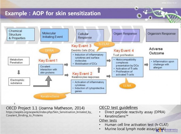 지난해 12월 서울시립대 최진희 교수가 국립환경과학원에 제출한 논문을 보면, 미국독성학회(SOT), 유럽·북미 환경독성화학회(SETAC) 등에서 △피부과민성에 대한 AOP △동물 복지 관점에서의 안전성 평가를 위한 경로기반 접근법 △생태독성학 및 위해성평가에서의 동물 대체 접근법 △피부과민성에 대한 독성발현경로의 분자 메커니즘 고정:기존 자료 분석 △AOP 적용을 향해–피부과민성에 대한 시험과 평가를 위한 통합 접근법(IATA)의 이행 △피부과민성 화학물질의 유해성 확인에 대한 통합적 접근법의 성능 평가 △화학물질 호흡 알레르기:독성발현경로의 역설계와 같은 피부 관련 AOP 논문이 발표되고 있다.