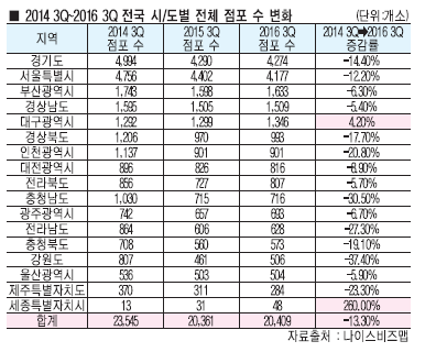 그 이유를 살펴보면 2015년을 기점으로 점포 수가 소폭이나마 다시 증가하는 부산, 대구, 경북, 전북 등의 지방 도시때문이다.