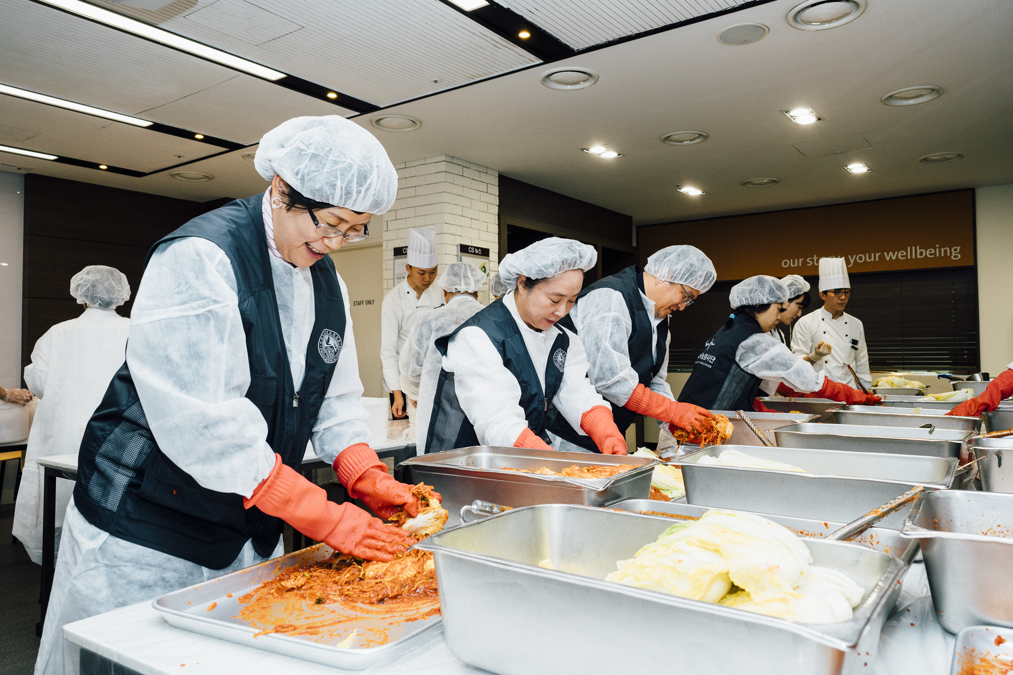 교직원으로 구성된 이화사랑나눔봉사단이 직접 김장 담가