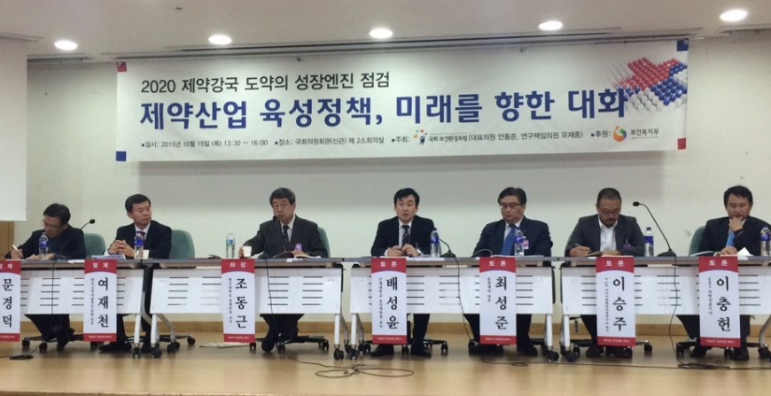 15일 열린 국회 보건․환경포럼(대표의원 안홍준, 연구책임의원 유재중)이 주최한 국회 세미나'2020 제약강국 도약의 성장엔진 점검 - 제약산업 육성정책, 미래를 향한 대화'포럼에서 국내 제약산업의 글로벌화를 위한 정부·학계·산업계 전문가들의 다양한 제언이 쏟아졌다.