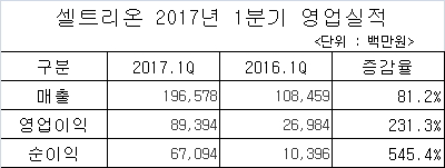 영업이익은 893억 9,400만원으로 전년 동기 대비 231.3% 증가했고, 순이익은 670억 9,400만원으로 2016년 1분기 대비 545.5% 늘어났다.