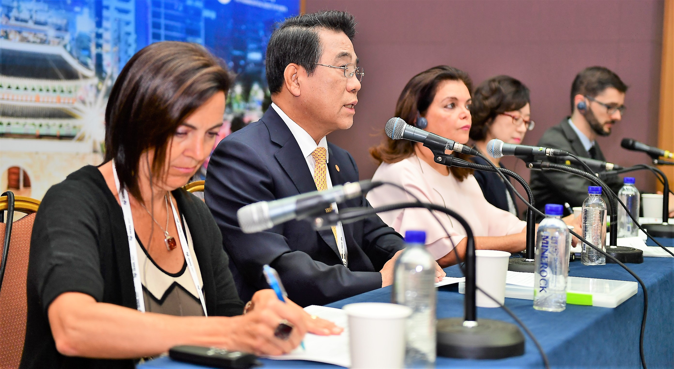 FIP서울총회본부와 세계약사연맹(FIP)는 11일 기자회견을 개최했다. 기자회견에는 카르멘 페냐 세계약사연맹(FIP)회장과 뤼크 베장송 세계약사연맹(FIP) 사무총장, 라파엘라 발로코 매타벨 박사(세계보건기구(WHO) 성분명처방 프로그램 그룹장), 조찬휘 대한약사회장, 문애리 대한약학회장 등이 참석했다.