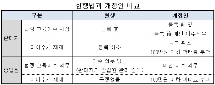 이에 따라 발의된 개정안은 안전상비의약품 판매자로 등록하려는 자에 대한 사전 교육 외에도, 매년 정기적으로 판매자와 종업원이 의약품의 안전성 확보와 품질관리에 관한 교육을 받게끔 하는 내용이다.