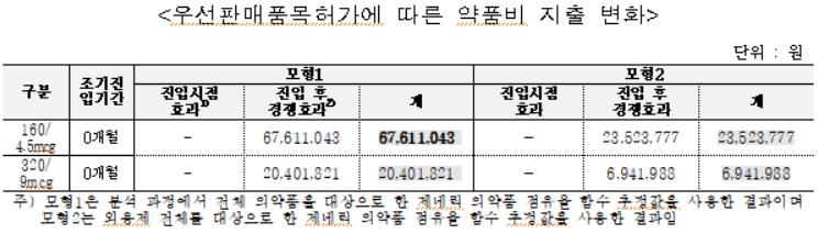 심비코트터부헬러 후발의약품의 약품비 지출은 약 8,800만원(모형 1기준), 약 3,100만원(모형 2기준) 증가한 것으로 추정됐다.