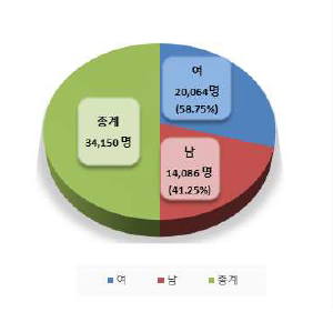 특히 서울과 경기가 전체회원의 44.81%를 차지하여 서울과 경기도에 집중하는 현상을 보였다.