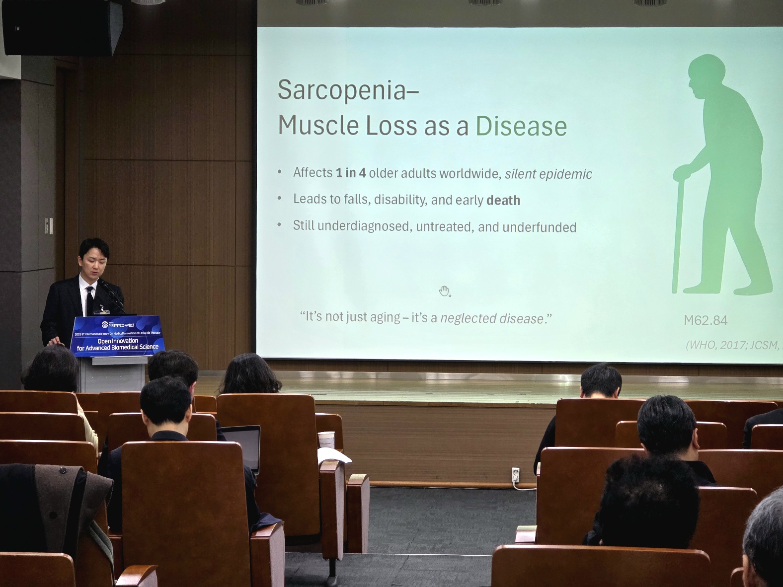 전 세계 65세 이상 인구의 약 10~27%, 평균 약 25%가 근감소증을 겪는 것으로 추정되며, 낙상·골절·장애·조기 사망과 밀접하게 연관된 대표적 노쇠 질환이다. 그럼에도 임상 현장에서는 “힘이 빠졌다”, “나이 들어 그렇다”는 식으로 치부되는 경우가 여전히 많다.