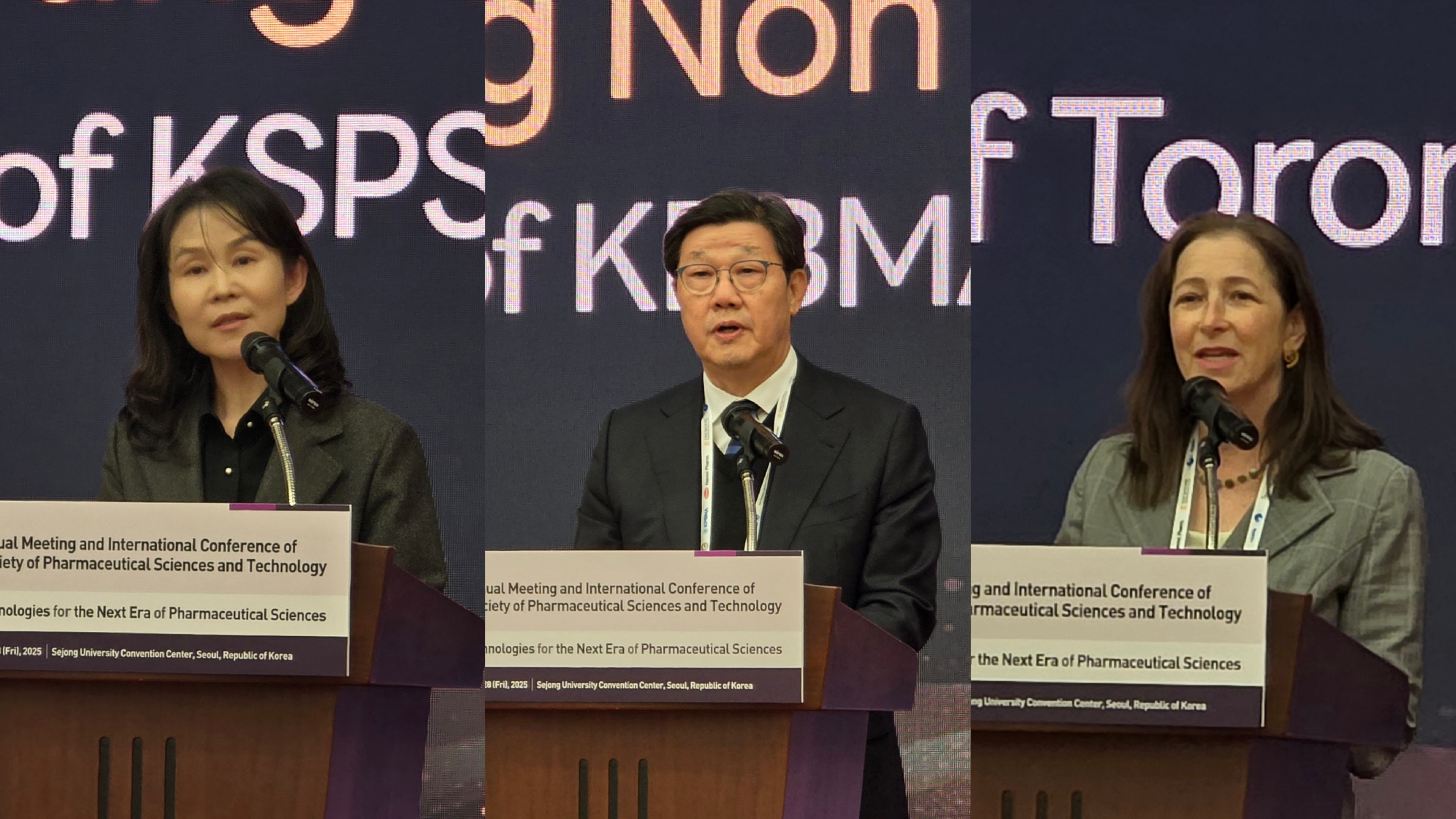 조혜영 한국약제학회 회장은 이날 인사말에서 “캐나다, 미국, 일본, 중국, 영국 등 전 세계에서 먼 길을 마다하지 않고 참석한 국제 연사들의 참여가 학술대회를 더욱 풍성하게 만들었다”며 “이번 대회는 과학적 융합과 글로벌 협력을 기반으로 미래 보건의료의 방향을 모색하는 자리”라고 말했다.