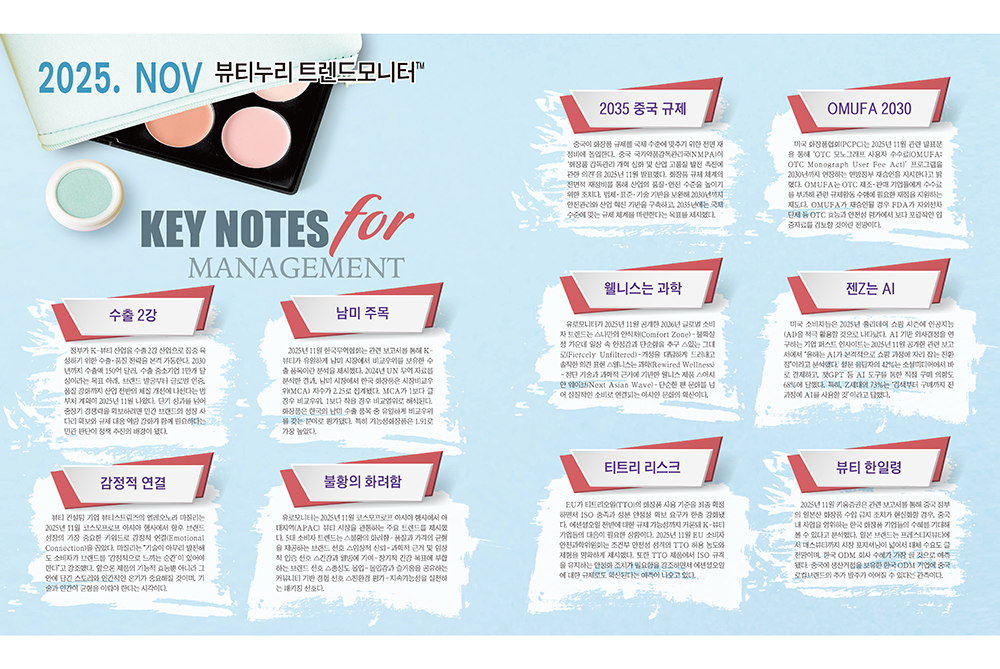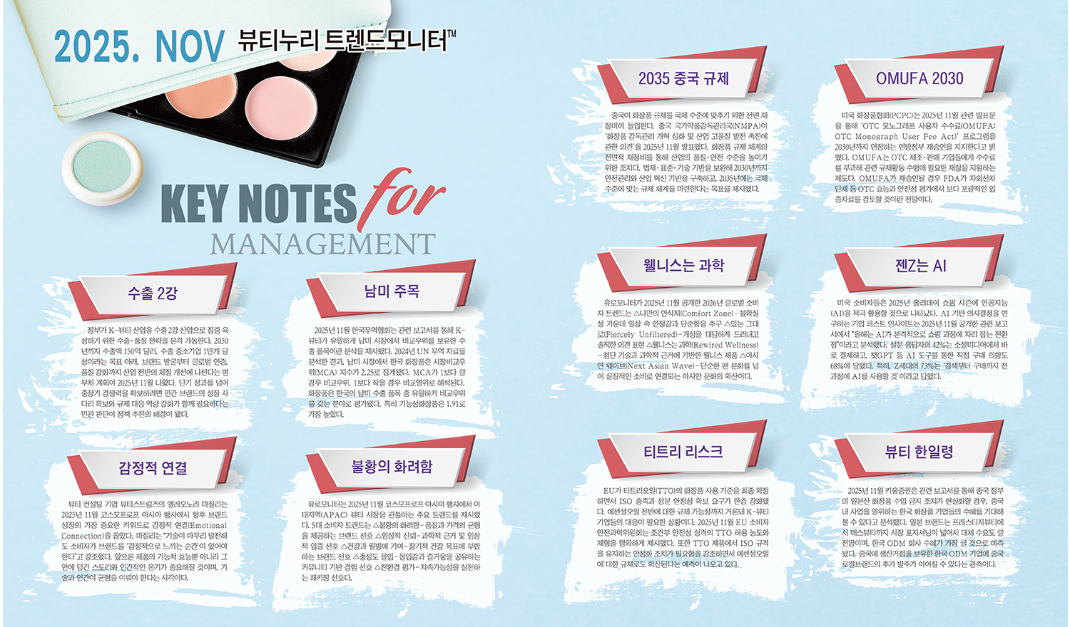 유로모니터는 2025년 11월 코스모프로프 아시아 행사에서 아태지역(APAC) 뷰티 시장을 관통하는 주요 트렌드를 제시했다. 5대 소비자 트렌드는 △불황의 화려함- 품질과 가격의 균형을 제공하는 브랜드 선호 △임상적 신뢰- 과학적 근거 및 임상적 입증 선호 △건강과 웰빙에 기여- 장기적 건강 목표에 부합하는 브랜드 선호 △충성도 몰입- 몰입감과 즐거움을 공유하는 커뮤니티 기반 경험 선호 △친환경 평가- 지속가능성을 실천하는 패키징 선호다.