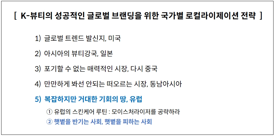 호모 사피엔스가 정착을 하고 농경문화를 일구면서 지배계급이 생겼다고 한다. 지배층은 노동을 하지 않는다. 그러다 보니 햇볕에 그을릴 일도 없고 하얀 피부 그대로 유지가 된다. 이렇듯 ‘하얀 피부=귀족’이라는 인식은 동서양 모두 뿌리깊이 박혀있다. 서구권에서는 현대 민주주의가 발전하며 이런 인종차별적인 인식은 수면 아래로 숨어들고, 오히려 햇볕에 그을린 피부가 ‘건강한 아름다움’이라는 생각이 보편화됐다. 반면 동양권에서는 여전히 하얀 피부에 대한 열망이 식을 줄 모른다. 아시아에서는 하얀 피부는 귀족적이라는 것은 서구처럼 약해졌지만,'하얀 피부 = 미인'이라는 인식은 여전하기 때문이다. 한국에서는 톤업(Tone-up) 선크림이 얼굴이 밝아지는 메이크업 효과(미백효과)가 있어 인기지만, 이 제품에 대한 유럽 시장의 반응은 영 시원찮다. 그들은 톤업이나 미백에 대한 니즈가 크지 않기 때문이다. 오히려 유색 인종들에게는 백탁이 생겨 일상적으로 사용하기 어려울 수도 있다. 지난 기고 글에서 언급한 것처럼 유럽 소비자들의 스킨케어 루틴이 늘어나면서 선크림이 일상 아이템으로 진입했고, 이에 따라 마치 수분크림처럼 느껴지는 한국의 선크림이 인기템으로 떠올랐다. 피부에 스며들어 백탁도 없어서 거슬리지 않고, 피부색에도 영향을 받지 않을 뿐더러 메이크업과도 궁합이 찰떡이었기 때문이다. ‘조선미녀’ 선스크린이 미국 시장에 이어 유럽 아마존 시장에서도 당당히 1위로 올라선 것도 바로 이 때문이다.