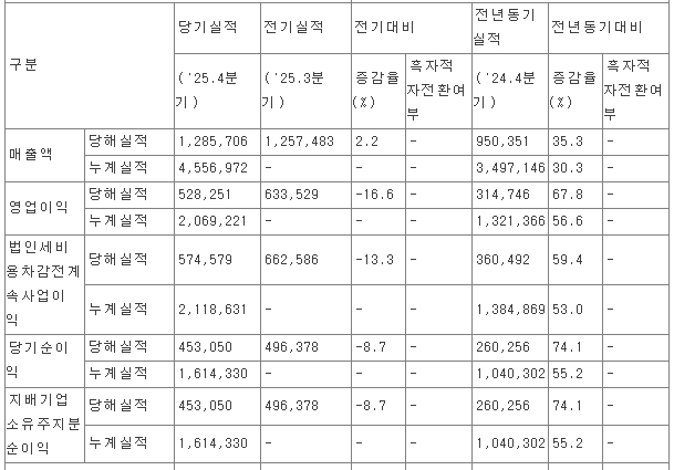 4분기는 매출 1조2857억원, 영업이익 5282억, 당기순이익 4530억원으로 전년동기대비 각각 35.3%, 67.8%, 74.1% 증가했다.