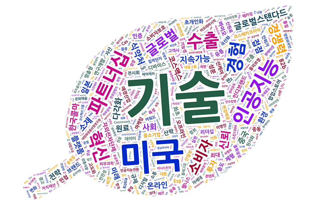 약업신문 자매지 화장품신문이 2026년 1월 뉴스 데이터를 분석한 결과 화장품 업계의 핫이슈 키워드는 ‘기술’ ‘미국’ ‘인공지능’으로 나타났다. 이어 ‘파트너십’ ‘수출’ ‘경험’ 등의 키워드도 높은 노출 빈도를 보였다.