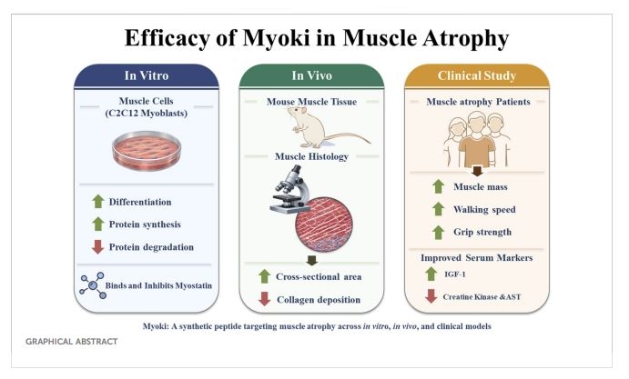 마이오키는 2025년 2월 미국 FDA로부터 신규 건강기능식품 원료(NDI)로 등재됐으며, 근감소증 환자를 대상으로 진행한 인체적용시험에서 ▲근육량 증가 ▲운동 수행 능력 개선 ▲신체 기능 향상과 함께, 근육 관련 바이오마커의 유의미한 변화를 확인하며 안전성과 유효성을 확보했다.