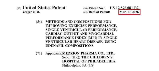 메지온에 따르면 해당 특허는 임상 시험 참여 연령이었던 12~19세 외, 성인까지도 특허 청구 범위에 포함돼 등록됐다. 또, 유데나필의 폰탄 환자 복용이 환자들에게 부작용을 최소화한다는 점이 특허 청구 범위에 포함돼 있다는 점도 주목된다.