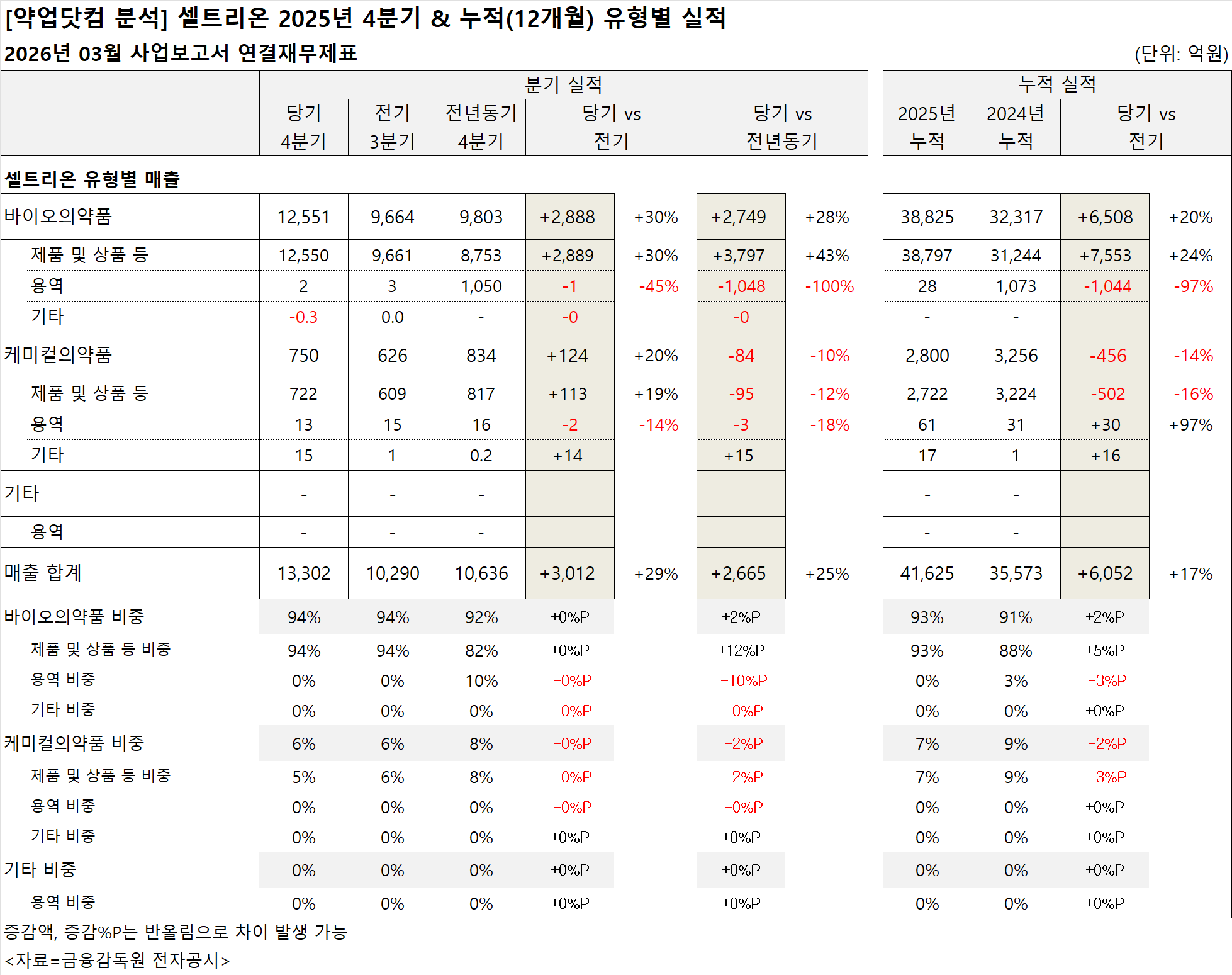 셀트리온은 2025년 누적 기준 바이오의약품 매출 증가로 전체 실적 성장을 견인한 것으로 나타났다.