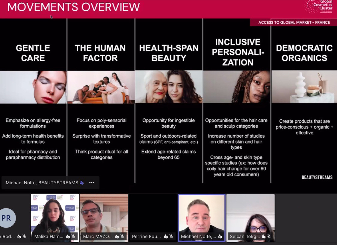 뷰티스트림즈의 마이클 놀테는 프랑스 시장의 최근 변화를 △민감성 피부 대응 △감각 경험의 재평가 △헬스스팬(Healthspan=건강수명) △포용적 개인화 △접근 가능한 오가닉 등 다섯 가지 키워드로 소개했다.