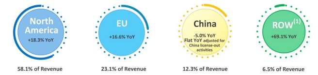 2025년 기준 지역별 매출 비중은 미국이 58.1%로 가장 컸으며, EU는 23.1%, 중국 12.3%, 기타지역 6.5%를 차지했다.