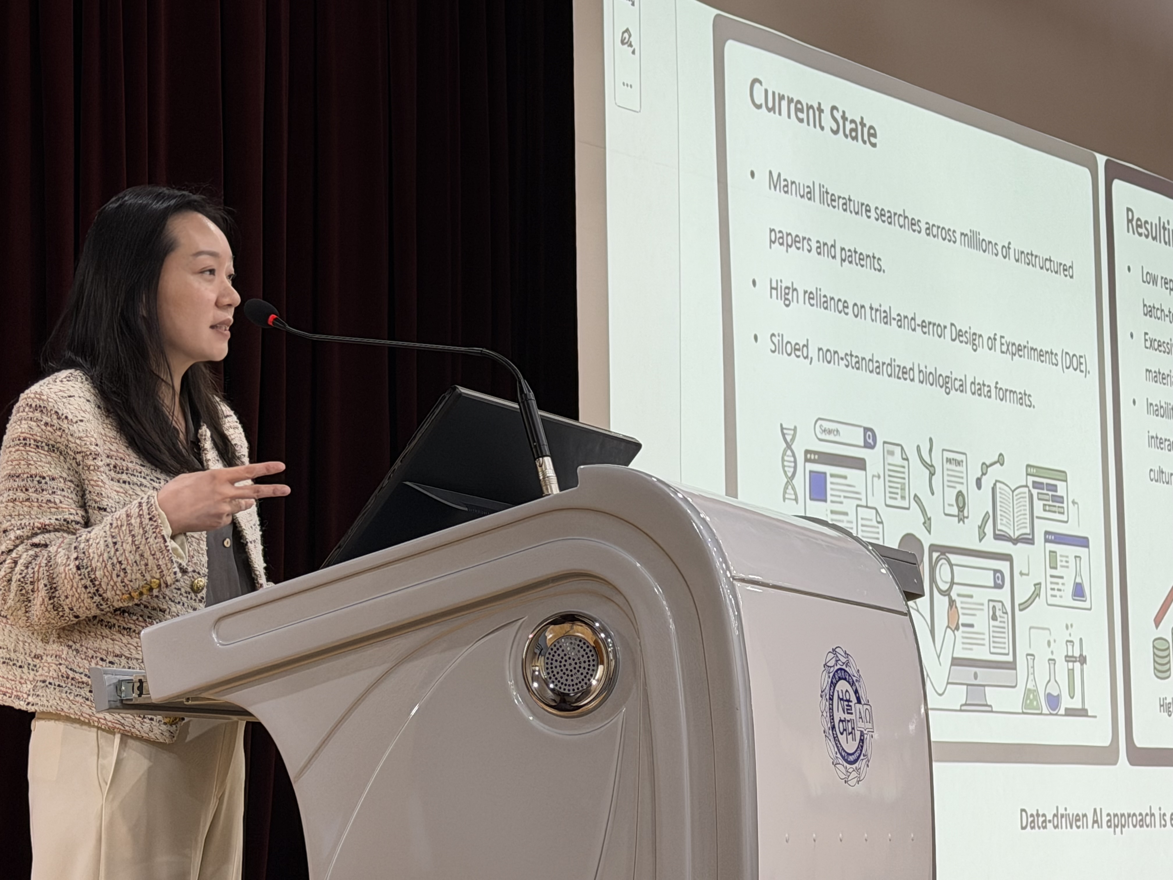 이날 키노트 스피커로 나선 바이오플러스 줄기세포배양센터 김세희 센터장(Ph.D., AI-Based Platform Lead)은 ‘AI 기반 세포배양 배지 설계 및 최적화를 통한 차세대 재생의료 플랫폼’을 주제로 강연을 진행했다.