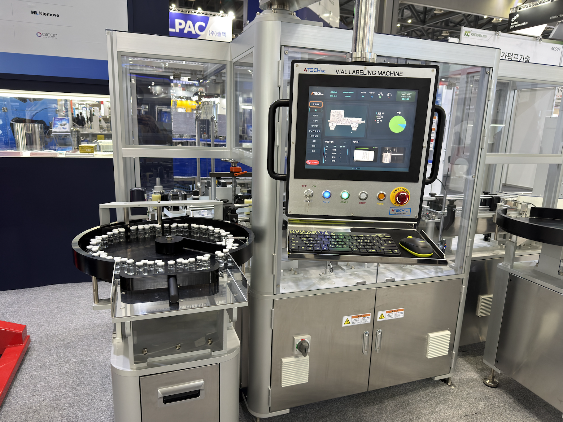이번 전시에서 에이테크아이엔씨가 전면에 내세운 테마는 프리필드시린지나 바이알 같은 의약품의 '2차 포장 자동화 턴키 솔루션'이다.