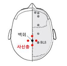 지압 : 정수리 부근(백회, 사신총)을 자주 두드리거나 마사지해 주면 머리의 기혈 순환이 좋아져 정신이 번쩍 듭니다.