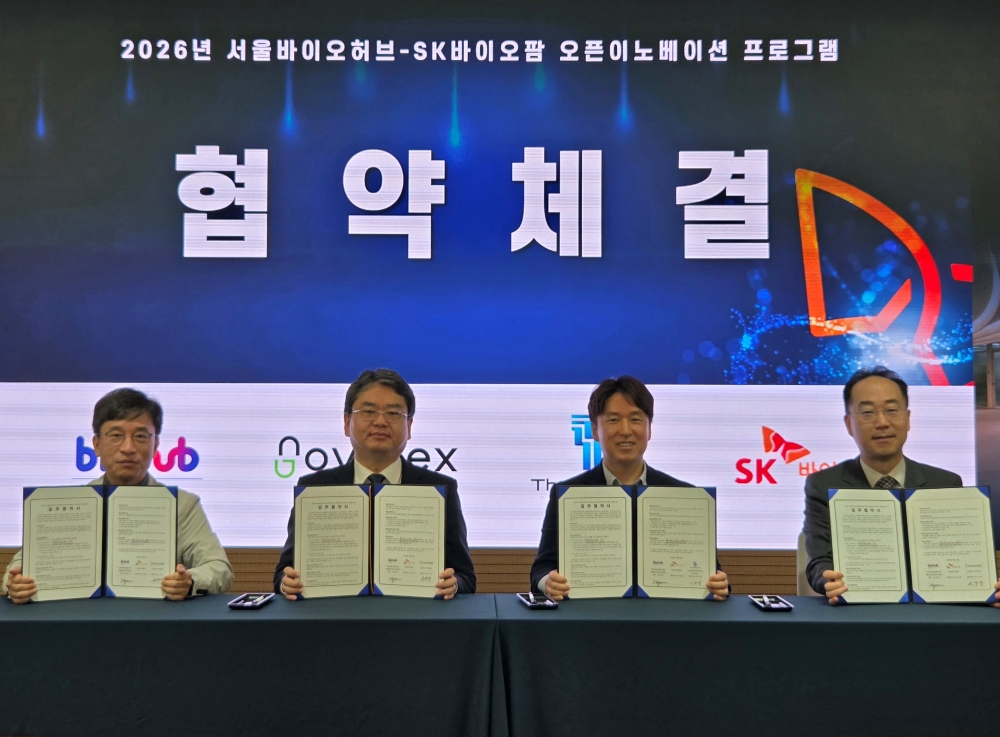 서울특별시 바이오·의료 창업 혁신 플랫폼 서울바이오허브(한국과학기술연구원·고려대학교 공동운영)는 SK바이오팜과 함께 ‘서울바이오허브–SK바이오팜 오픈이노베이션 프로그램’의 첫 기수 협력기업 2개사를 선정하고, 2일 협약식을 개최했다고 밝혔다.
