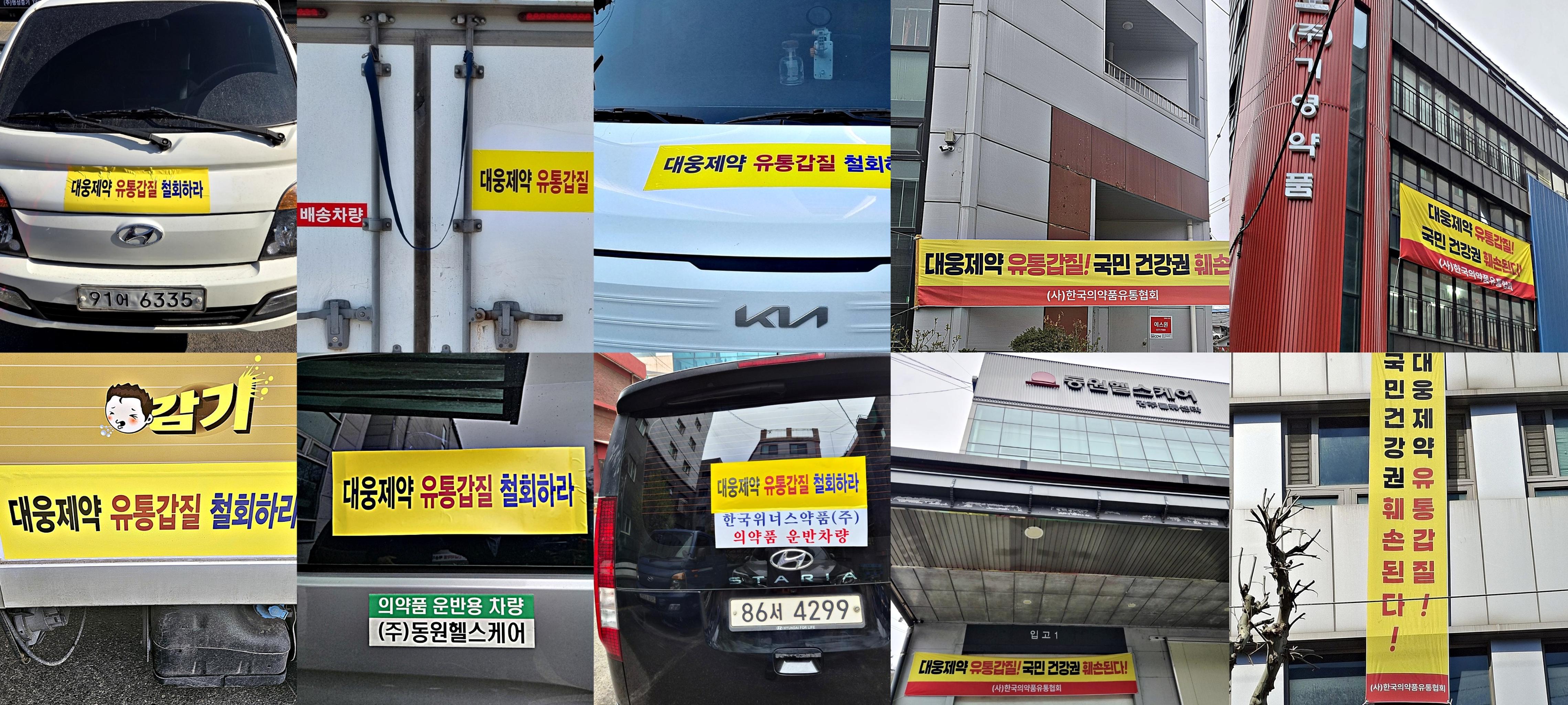 이번 조치의 핵심은 국민들에게 현 상황을 직접적으로 알리는 데 있다. 전국 주요 도로를 운행하는 의약품 배송 차량에 항의 문구가 담긴 스티커를 부착해, 일상적인 물류 이동 자체를 홍보 수단으로 활용한다는 전략이다. 이와 함께 주요 유통업체 사옥에도 현수막을 설치해 시각적 노출을 극대화하고 있다.