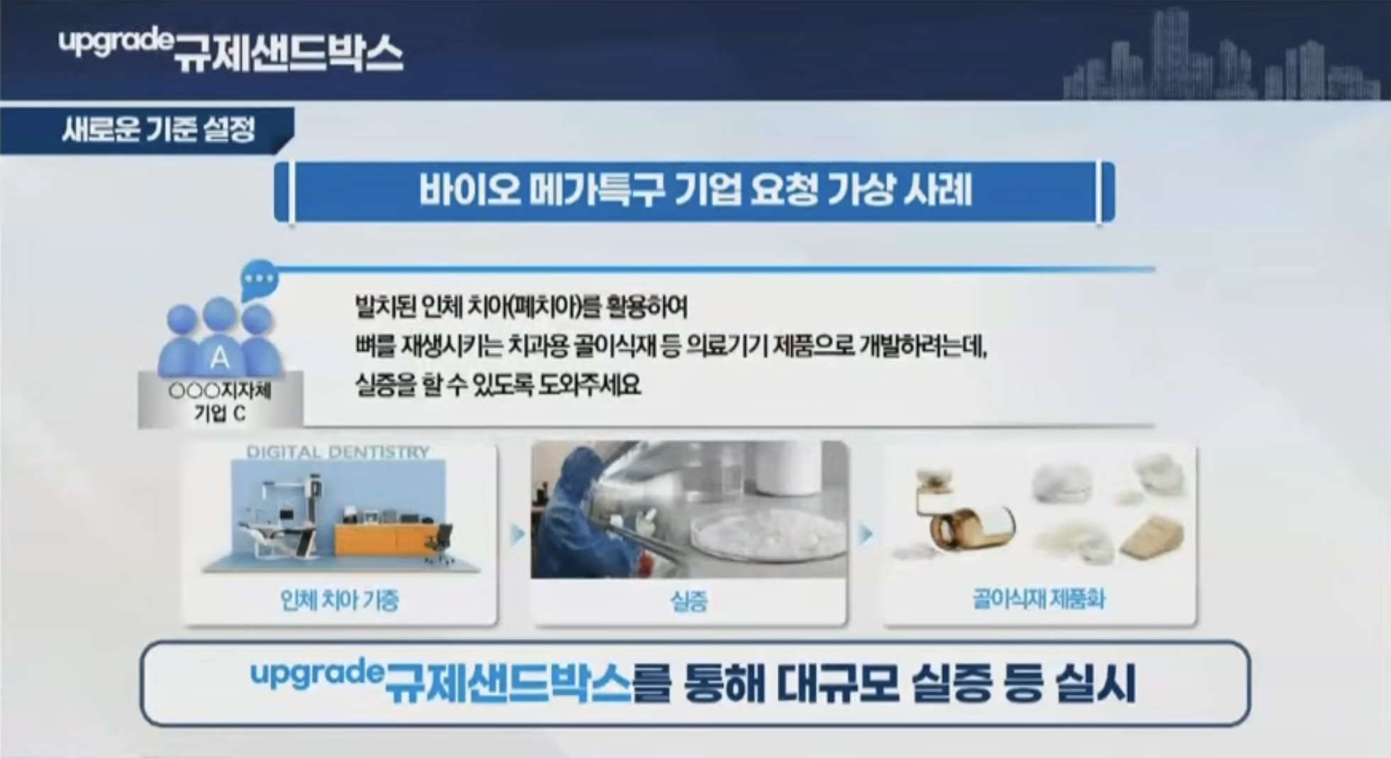 규제 사각지대에 놓인 신기술은 'UPGRADE 규제샌드박스'를 통해 활로를 찾는다. 대규모 실증 지원과 심의 기간 단축이 핵심이다. 일례로, 현행법상 폐기물로 분류되어 연구 활용이 원천적으로 막혀있던 '발치된 인체 치아(폐치아)'를 활용한 치과용 골이식재 등 의료기기 개발에 대한 대규모 실증이 특구 내에서 본격적으로 이루어질 예정이다.