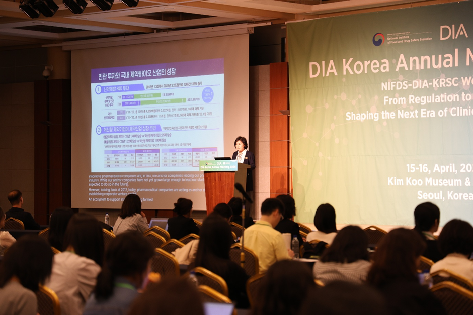 첫날 기조세션에서는 DIA 글로벌 CEO와 보건복지부 정은영 보건정책국장이 연사로 나서 글로벌 신약개발 환경 변화와 국내 정책 방향을 제시했다.