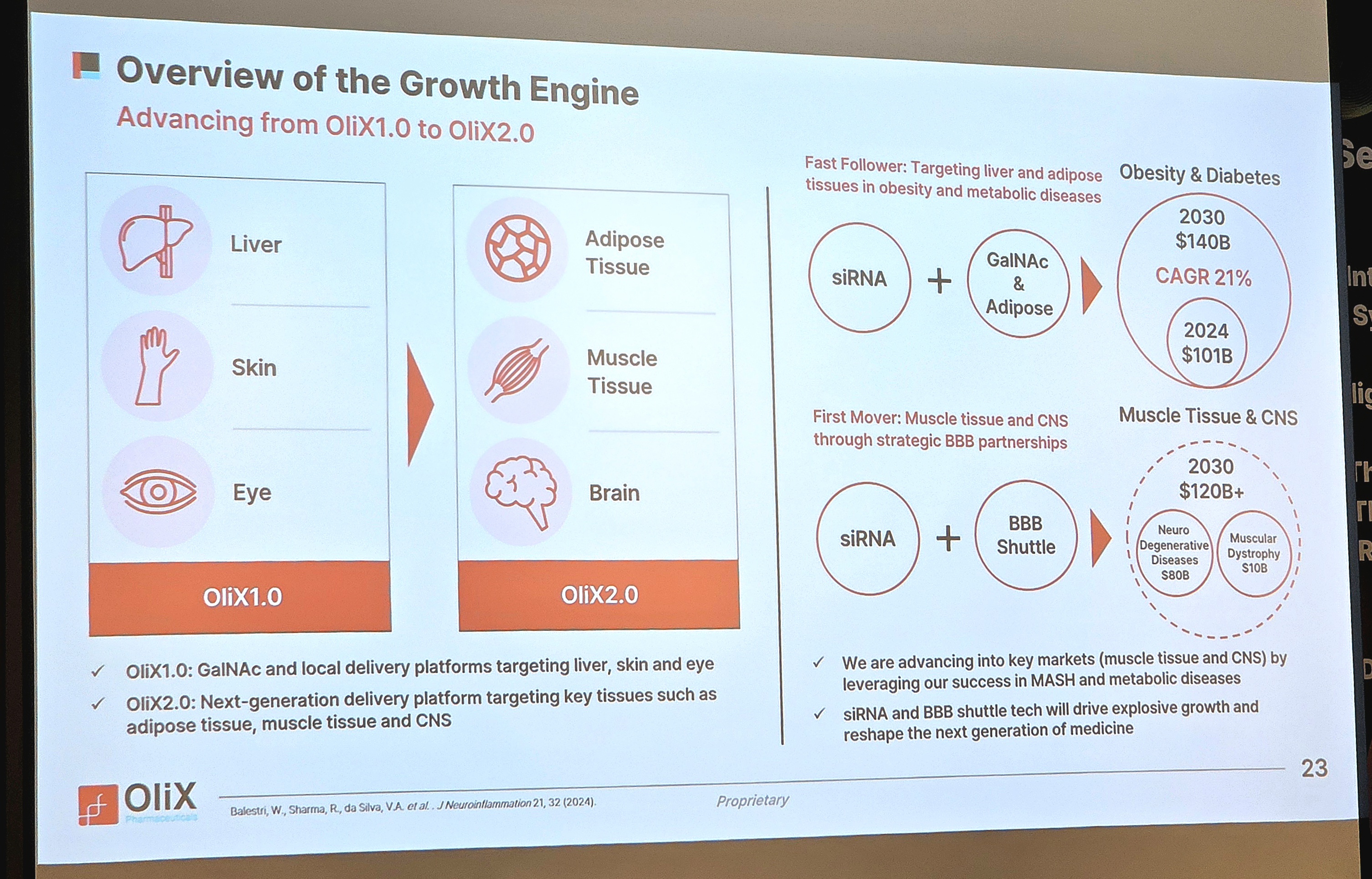 올릭스 2.0 전략의 또 다른 방향은 중추신경계다. 회사는 siRNA 기반 치료제가 세포 내(intracellular) 타깃을 직접 억제할 수 있다는 점을 핵심 경쟁력으로 제시했다.
