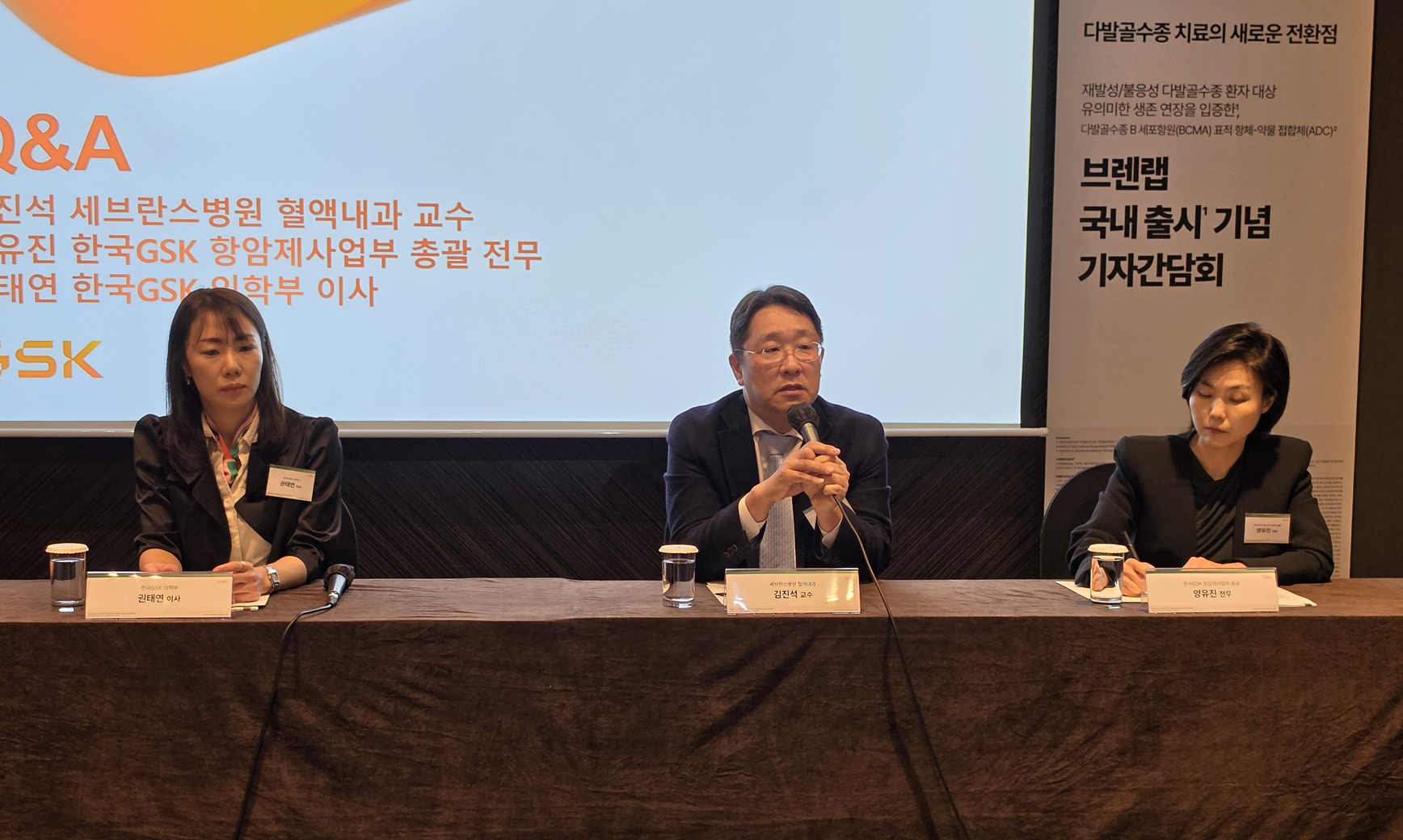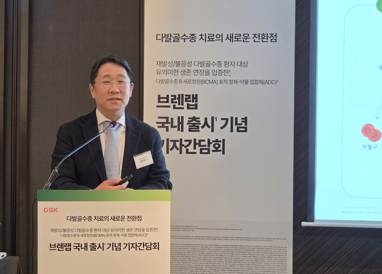 GSK는 29일 ‘재발·불응성 다발골수종 환자에서 유의한 생존 연장을 입증한 다발골수종 B세포 성숙항원(BCMA) 표적 항체약물접합체 브렌랩 국내 출시 기자간담회’를 개최했다. 이날 발표를 맡은 세브란스병원 혈액내과 김진석 교수는 다발골수종의 질환 특성과 현재 치료 한계, 그리고 브렌랩의 임상적 의미를 중심으로 설명했다.