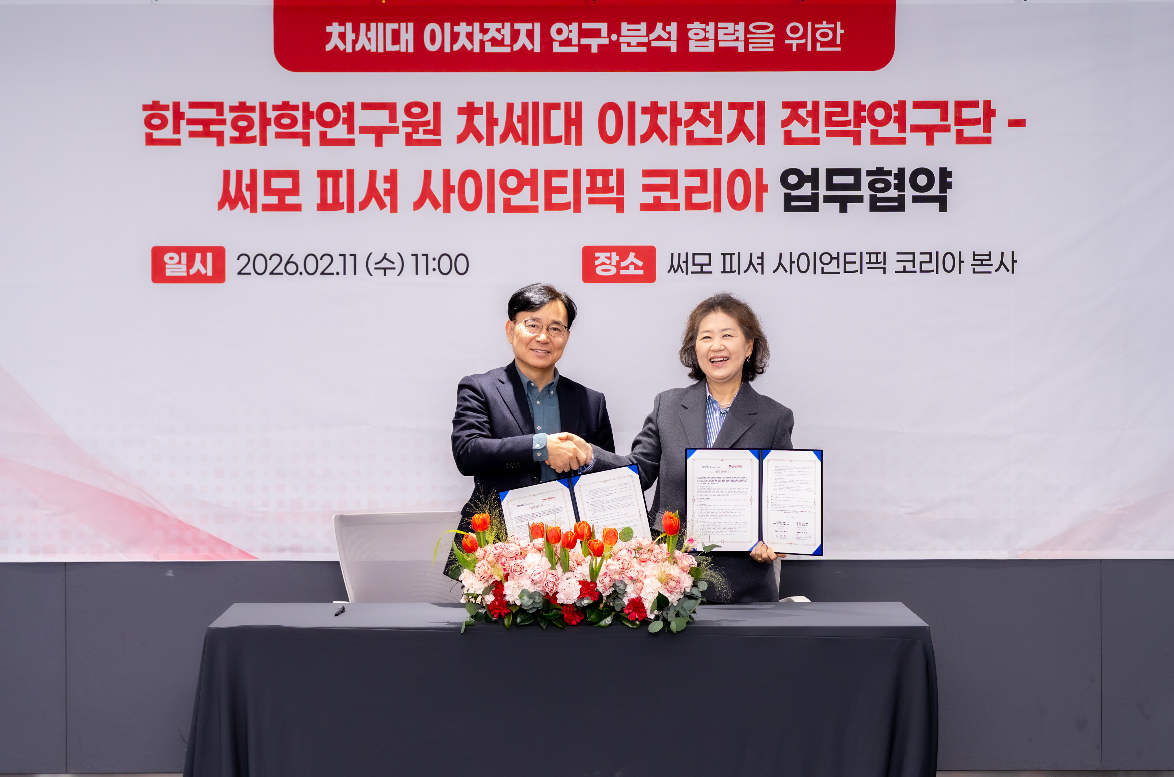 세계적인 과학 기업 써모 피셔 사이언티픽(Thermo Fisher Scientific, 이하 ‘써모 피셔’, 대표 석수진)은 한국화학연구원( 이하 ‘KRICT’, 원장 이영국) 차세대 이차전지 전략연구단과 차세대 이차전지 연구 및 분석 분야에서 연구 협력 및 기술 교류를 위한 업무협약(MOU)을 11일 체결했다. 이번 업무협약을 통해 양 기관은 차세대 이차전지 연구 및 분석 분야 전반에서 기술 교류, 공동 연구, 연구·분석 인프라 활용, 인재 양성 등을 포함한 협력 체계를 단계적으로 추진한다.