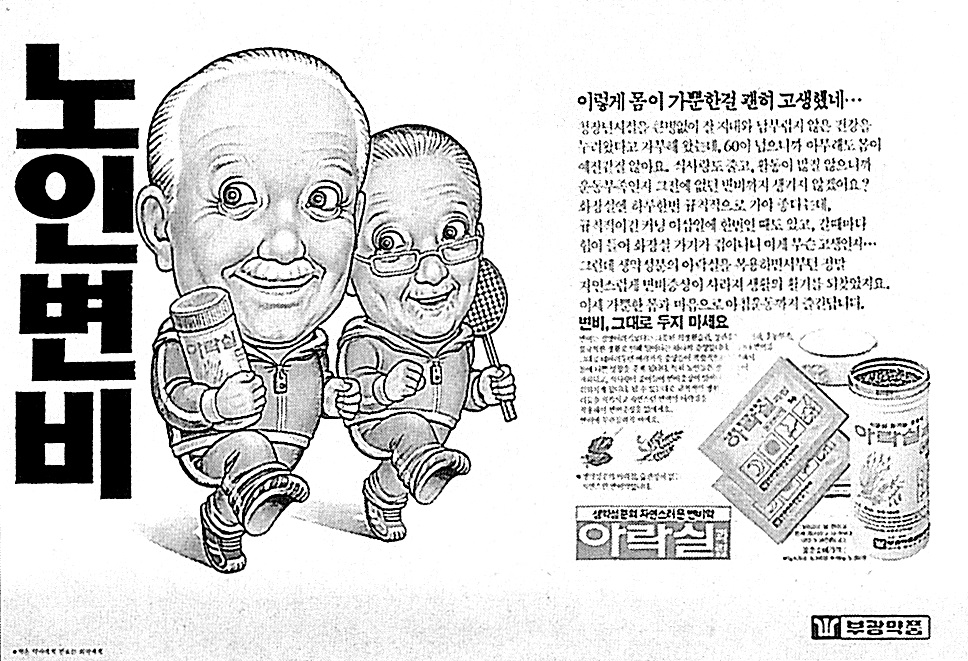 부광약품 역시 변비치료제 아락실, 빈혈치료제 훼로바, 감기약 코리투살 등 3총사를 내세워 20% 가까운 증가세를 유지했다. 이 당시 아락실광고는 노인들의 변비치료제라는 광고전략을 통해 연령대별 성별 차별화된 광고전략을 구사하기도 했다.