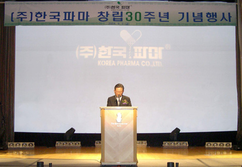 힘찬도약, 제2창업·이란 슬로건 아래 박재돈사장을 비롯한 일본 ‘오따’사등 해외 거래선, 우수협력업체 등 총 270여명이 참석한 가운데 치러진 제 30주년 창립기념식에서 “한국파마는 전임직원 및 협력업체가 함께 노력할 것”을 다시 한번 다짐했다.