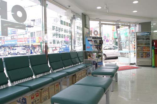 30평의 큰 규모는 아니지만 출입문이 양쪽으로 3곳이 나 있어 탁 트인 고객통로를 확보하고 있으며, 조제비중이 80%를 넘고 있는 만큼 20여 석의 대기공간으로 편안함을 연출하고 있다.