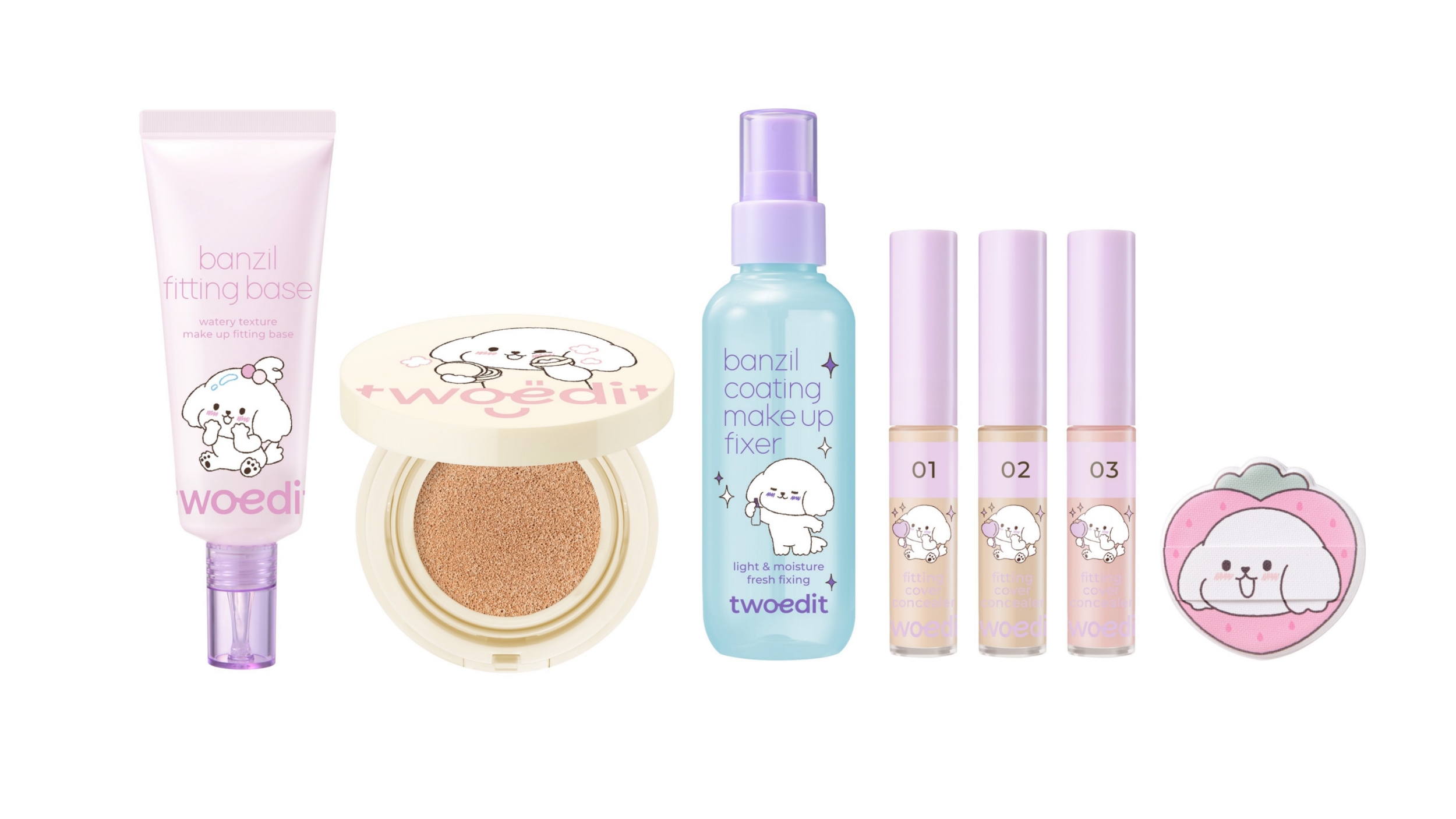 퍼프를 제외한 모든 제품에는 티트리·시카·세라마이드 등 △피부 진정 성분 3종이 들어 있으며, 피부자극테스트를 완료했다. 이번 컬래버 에디션은 다이소에서 판매된다.