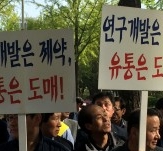 - 의약품 유통업계 종사자 250여명이 한미약품 본사앞에서 의약품 유통업 진출을 규탄하는 시위를 개최했다. 한국...