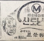 - <57> 만영제약사 '산토닝정' 1954년 6월3일(목요일)자 약업신문(당시제호 약사시보) 제9호 1면 하단에 발행된 광고. 당시...