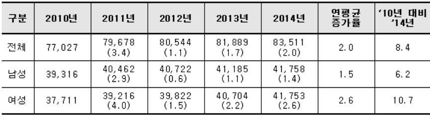 국민건강보험공단(이사장 성상철)이 2010년부터 2014년까지'뇌출혈'의 건강보험환자 진료비 지급자료를 분석한 결과,‘뇌출혈’ 진료인원은 2010년 7만 7,027명에서 연평균 2.0%씩 증가하여 2014년 8만 3,511명인 것으로 나타났다.