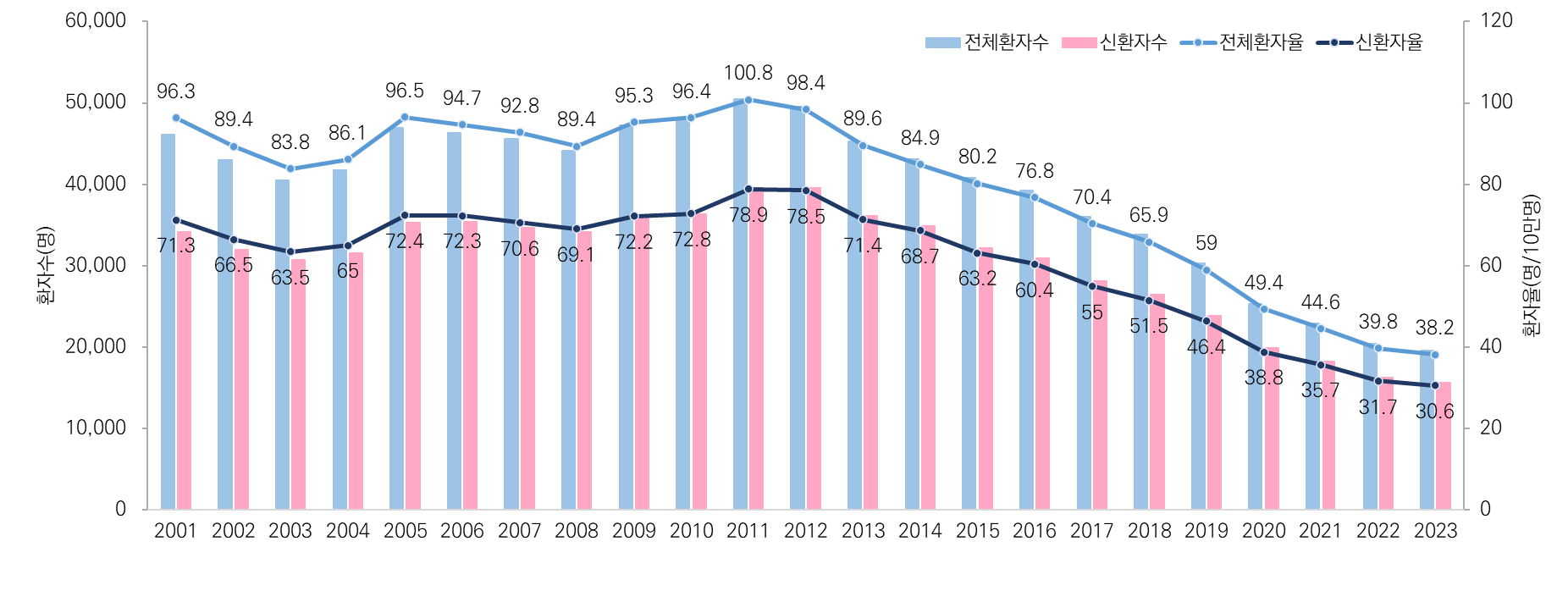 하지만 매년 약 2만명 수준의 결핵환자를 장기간 관리하여 치료성공률 향상에 기여한 노력에도 불구하고 65세 이상 및 외국인 환자 비율의 증가로 환자관리는 계속 어려운 상황으로, 향후 많은 노력과 투자가 필요하다.
