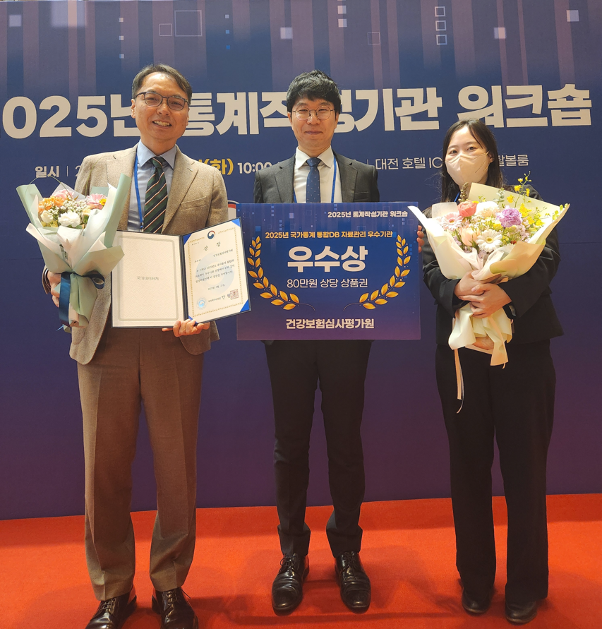 건강보험심사평가원(원장 강중구, 이하 심사평가원)은 11월 25일 국가데이터처가 주관하는 제37회 통계작성기관 워크숍에서‘국가통계 통합DB 자료관리 우수기관’으로 선정됐다.