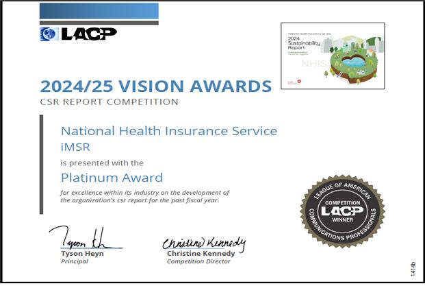 정기석 국민건강보험공단 이사장은 “이번 수상은 지속 가능한 경영 원칙을 적극 실천하는 공단의 노력이 세계적으로 인정받은 결과로 매우 뜻깊다”며, “앞으로도 더 나은 미래를 위한 사회적 가치 창출과 환경적 기여를 이어 나갈 것”이라고 밝혔다.