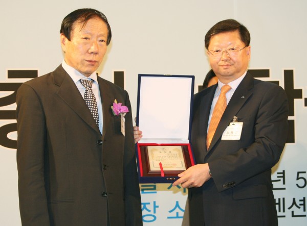 노용갑 JW중외메디칼 사장이 3일 63빌딩에서 개최된 '제54차 대한병원협회 정기총회'에서 김윤수 회장으로부터 표창패를 받았다.