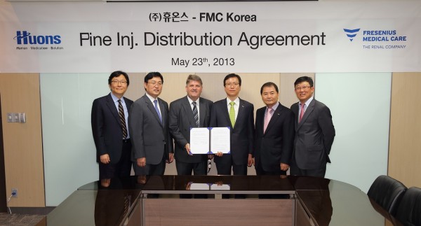 ㈜휴온스(대표 전재갑)는 신장질환치료전문기업 프레제니우스메디칼케어코리아(대표 최성옥, 이하 FMC코리아)과 향후 3년간 100억원 규모의 제품을 공급하는 내용의 독점판매계약을 체결했다고 23일 밝혔다.