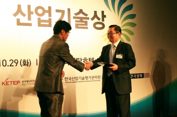한국유나이티드제약 강덕영 대표이사가 산업통상자원부 주최로 29일 삼성동 인터컨티넨탈 서울 코엑스 지하 1층 다이아몬드홀에서 열린 ‘제3회 이달의 산업기술상 시상식’에서 ‘난용성 약물의 용출률 향상과 부작용 발현이 최소화된 실로스타졸(cilostazol) 서방정 개발’로 사업화기술 우수상인 ‘한국산업기술진흥원장상’을 받았다.