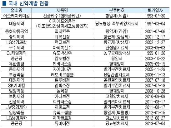 그 결과 1993년 SK케미칼의 항암제인 ‘선플라주’가 국내 신약 1호로 탄생했으며, 이에 자국을 받아 제약사들이 앞다투어 신약개발에 총력을 기울였다.