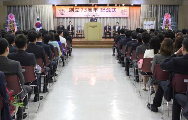 차분한 분위기 속에서 진행된 기념식에서 이정치 회장은 유구한 시간동안 회사 발전을 위해 노력한 임직원들의 노고를 치하하며 "많은 어려움 속에서도 성장을 거듭한 일동의 역사를 교훈삼아 또 한 번의 도약을 이루어내자"고 당부했다.